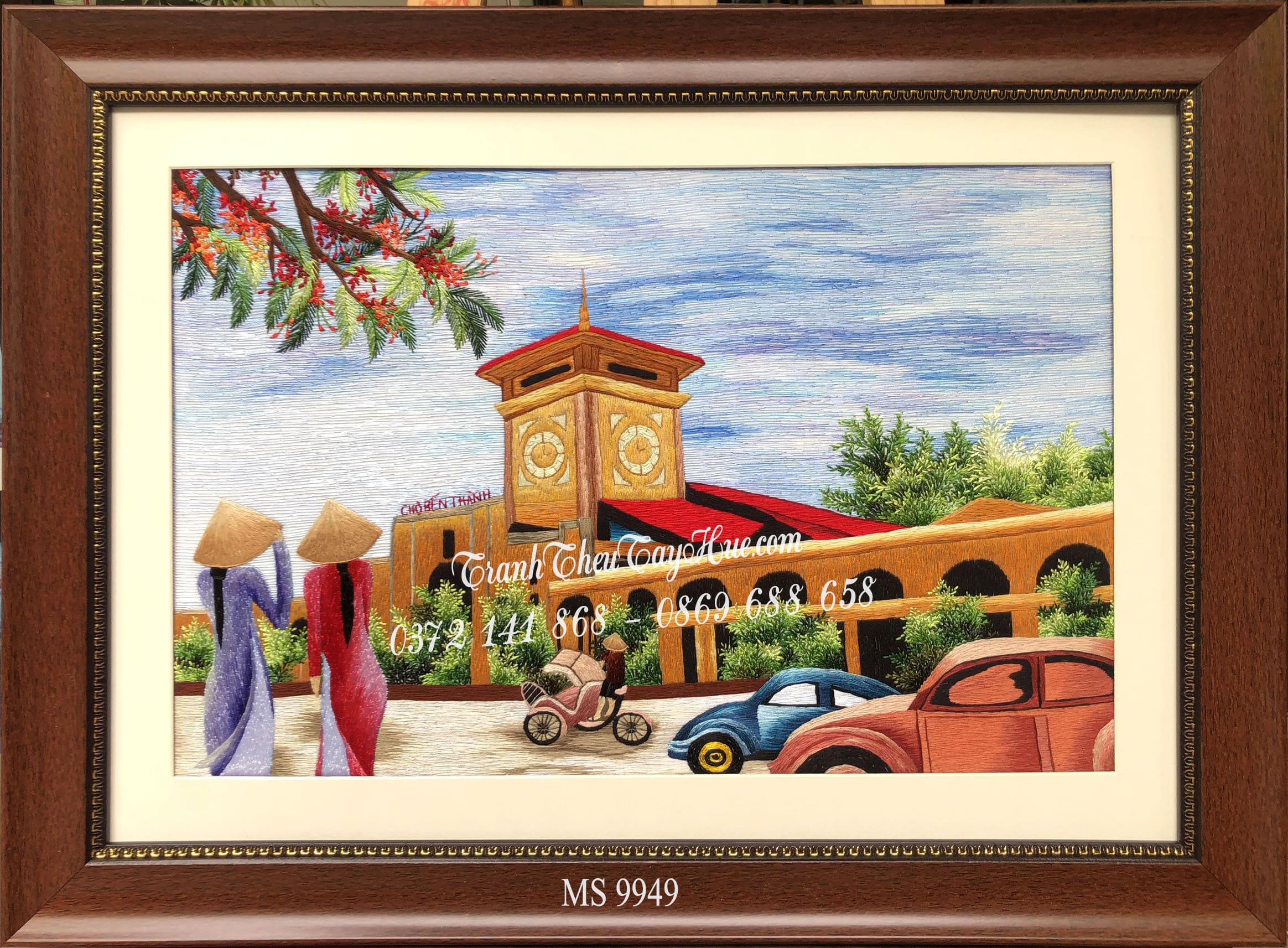 Tranh chợ bến thành được thêu bằng tay bởi nghệ nhân với hơn 20 năm kinh nghiệm