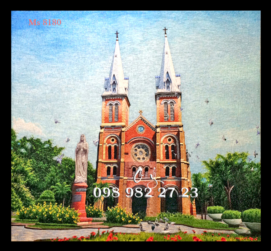 Tranh thêu tay tphcm MS 8180 - Tranh thêu nhà thờ Đức Bà