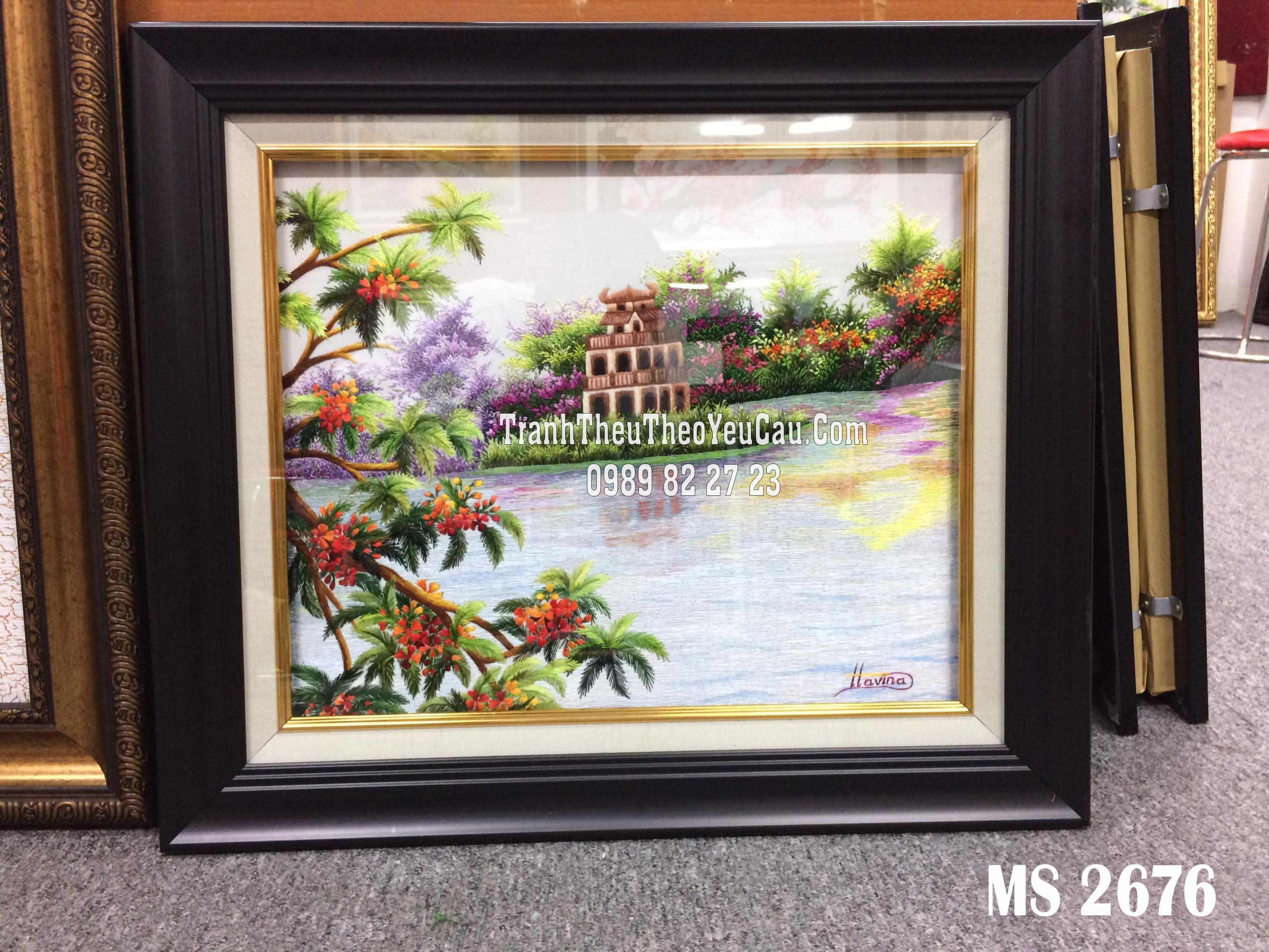 Tên tác phẩm: Tranh thêu phong cảnh làng quê MS 2676