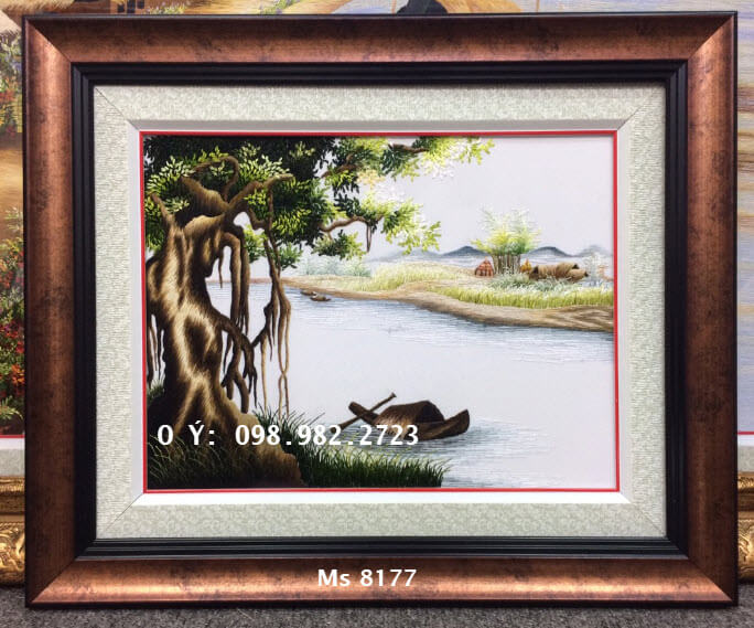 Tranh thêu đồng quê MS 8177, tranh đang có sẵn