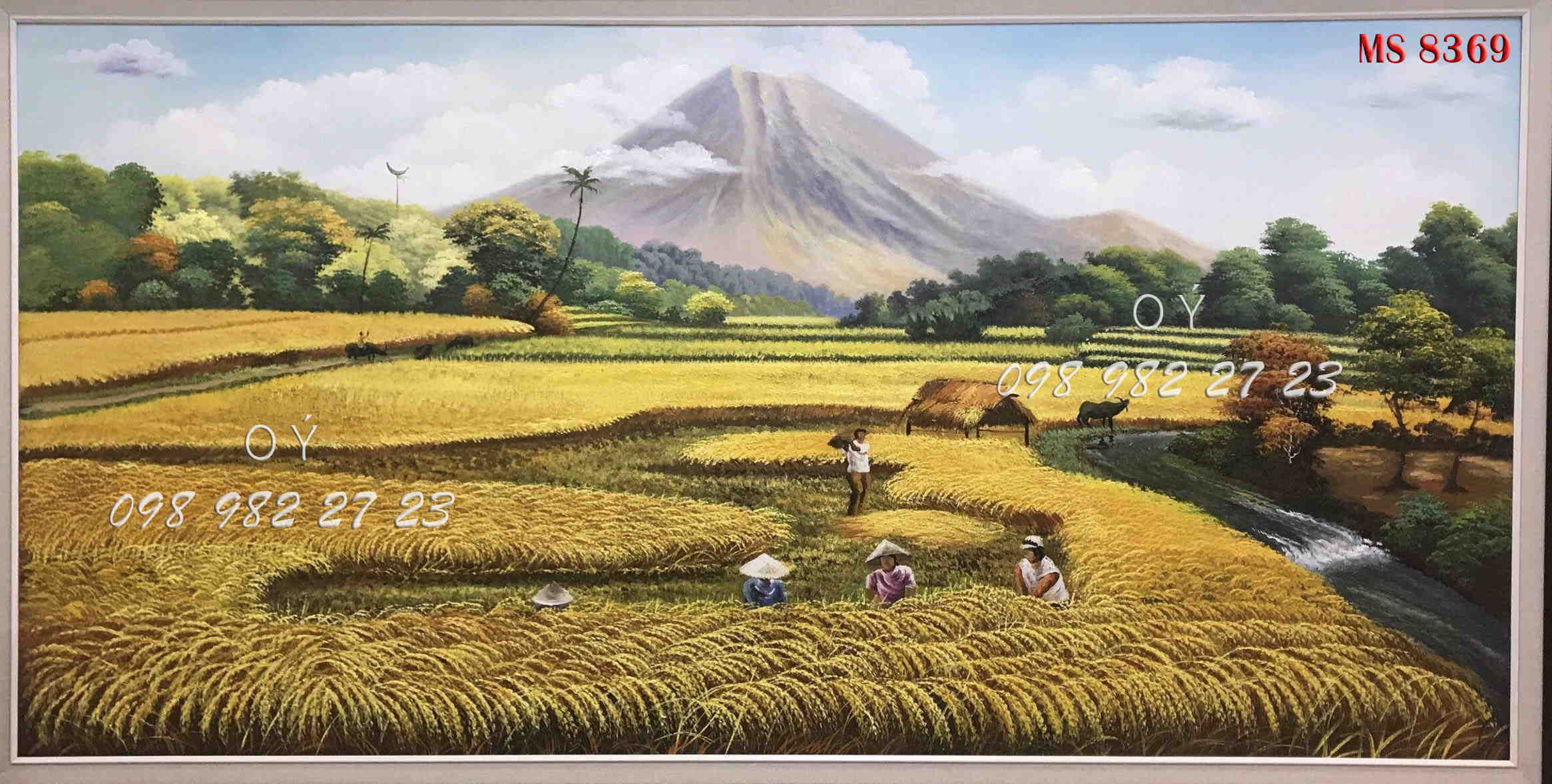 CHI TIẾT TÁC PHẨM TRANH THÊU PHONG CẢNH LÀNG QUÊ MS 8369: