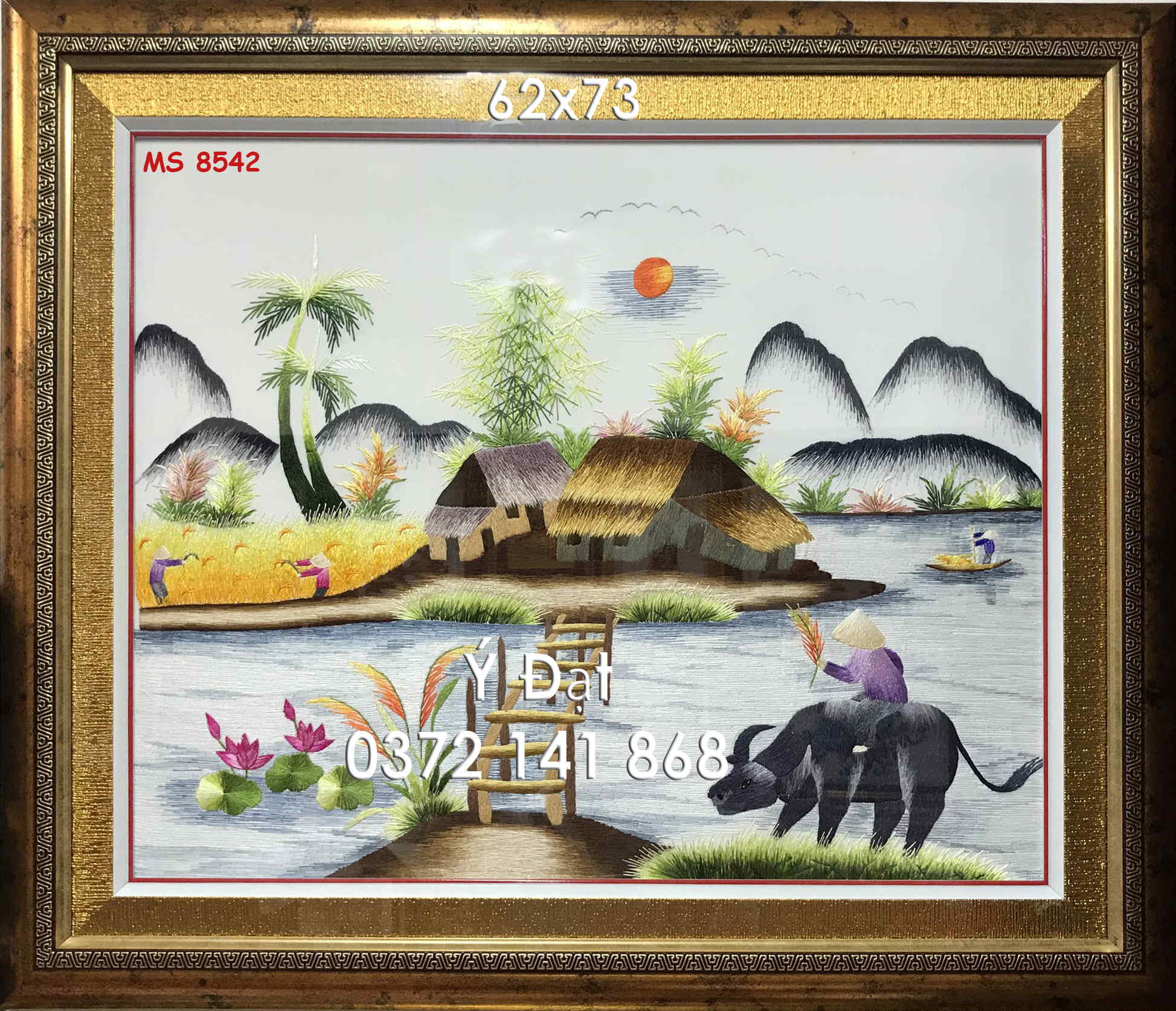 Những bức tranh thêu phong cảnh làng quê Việt Nam là loại tranh thêu đặc sắc và cao cấp. Chúng được thêu một cách tinh xảo, tỉ mỉ…Tranh thêu phong cảnh làng quê Việt Nam mang đậm tính thiên nhiên, làng quê, đất nước và con người Việt Nam. Tranh thêu phong cảnh làng quê Việt Nam mang đến cho ngôi nhà, văn phòng…của bạn một bức tranh thiên nhiên sống động đầy màu sắc, tạo cho gian phòng thêm tươi mới, tạo cho ta cảm giác như được hoàn quyện với thiên thiên.