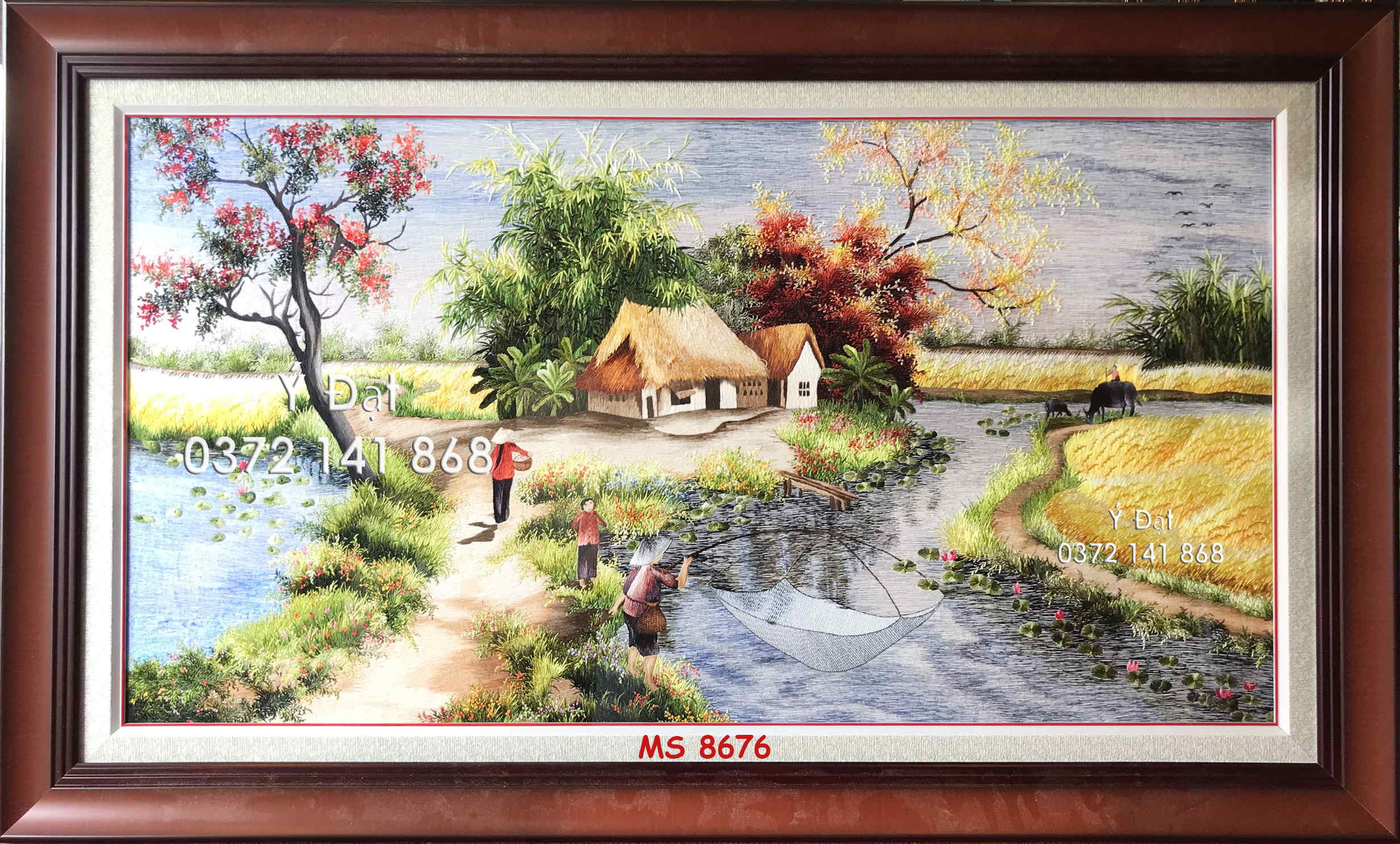 Những bức tranh thêu phong cảnh làng quê Việt Nam là loại tranh thêu đặc sắc và cao cấp. Chúng được thêu một cách tinh xảo, tỉ mỉ…Tranh thêu phong cảnh làng quê Việt Nam mang đậm tính thiên nhiên, làng quê, đất nước và con người Việt Nam. Tranh thêu phong cảnh làng quê Việt Nam mang đến cho ngôi nhà, văn phòng…của bạn một bức tranh thiên nhiên sống động đầy màu sắc, tạo cho gian phòng thêm tươi mới, tạo cho ta cảm giác như được hoàn quyện với thiên thiên.