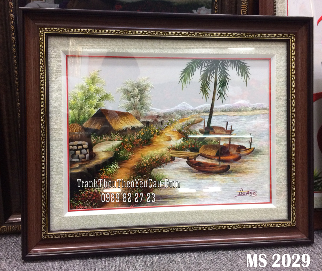 Tên tác phẩm: Tranh thêu phong cảnh làng quê MS 2029