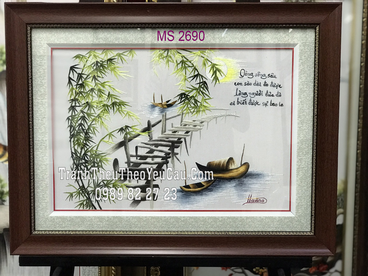 Tên tác phẩm: Tranh thêu phong cảnh làng quê MS 2690