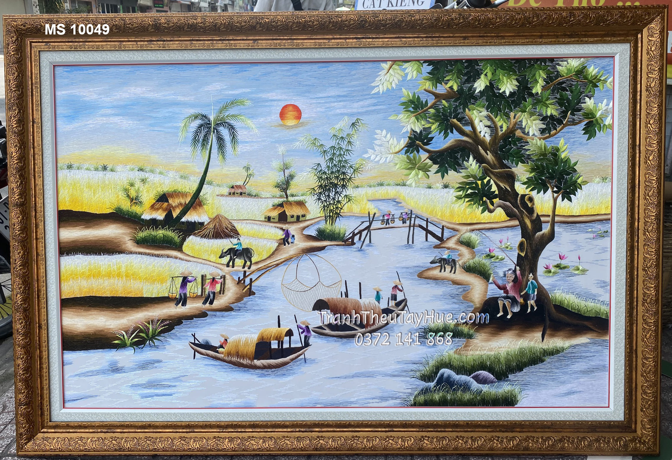 Tên tác phẩm: Tranh thêu phong cảnh làng quê MS 10049