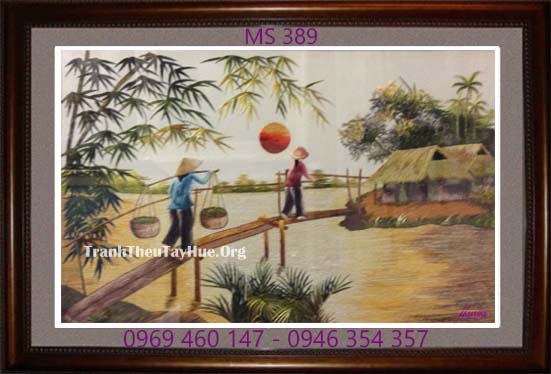 Tên tác phẩm: Tranh thêu phong cảnh làng quê MS 389