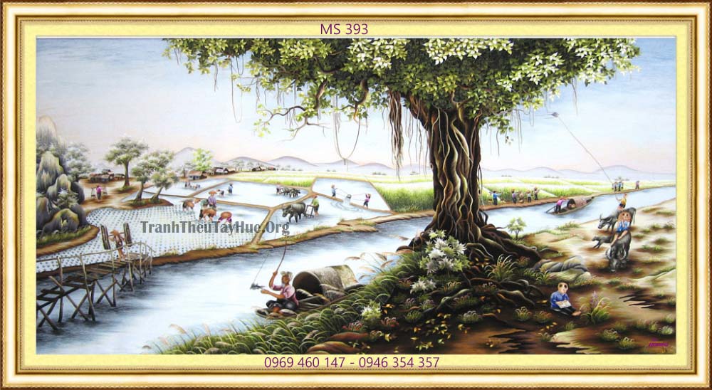 CHI TIẾT TÁC PHẨM TRANH THÊU PHONG CẢNH LÀNG QUÊ MS 393: