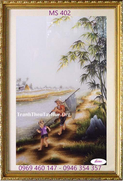 Tên tác phẩm: Tranh thêu phong cảnh làng quê MS 402