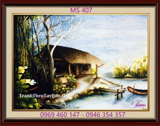 Tên tác phẩm: Tranh thêu phong cảnh làng quê MS 407