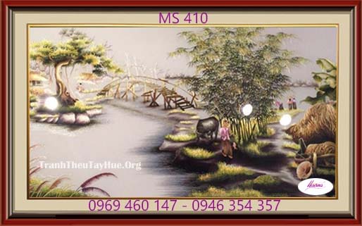 Tên tác phẩm: Tranh thêu phong cảnh làng quê MS 410