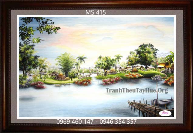 Tên tác phẩm: Tranh thêu phong cảnh làng quê MS 415