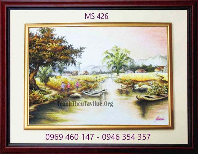 Tên tác phẩm: Tranh thêu phong cảnh làng quê MS 426