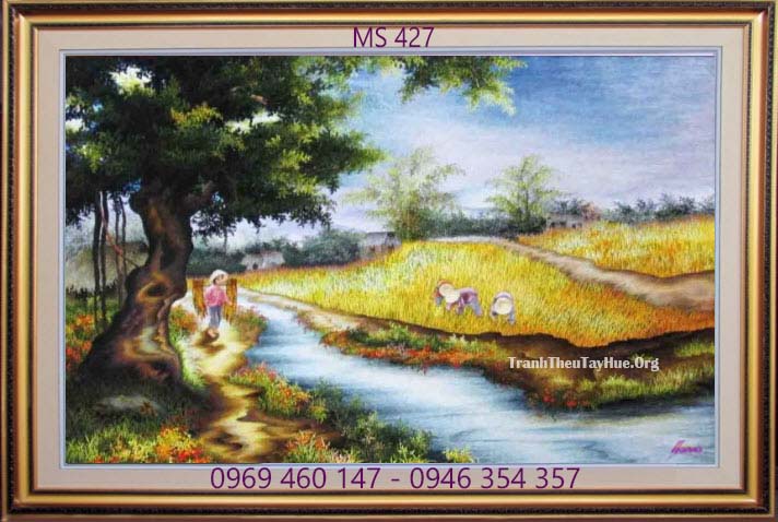 Tên tác phẩm: Tranh thêu phong cảnh làng quê MS 427