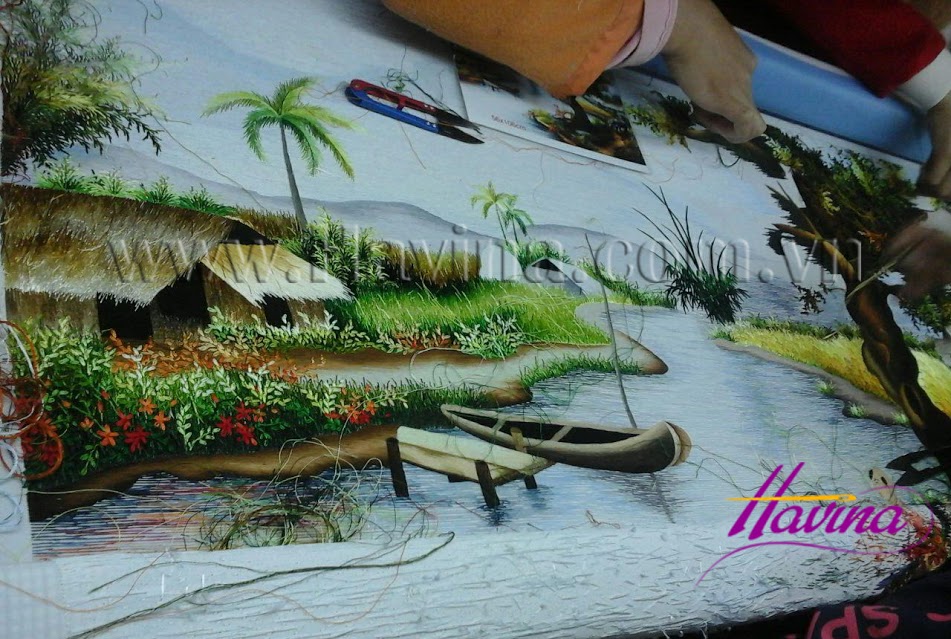 Những bức tranh thêu phong cảnh làng quê Việt Nam là loại tranh thêu đặc sắc và cao cấp. Chúng được thêu một cách tinh xảo, tỉ mỉ…Tranh thêu phong cảnh làng quê Việt Nam mang đậm tính thiên nhiên, làng quê, đất nước và con người Việt Nam. Tranh thêu phong cảnh làng quê Việt Nam mang đến cho ngôi nhà, văn phòng…của bạn một bức tranh thiên nhiên sống động đầy màu sắc, tạo cho gian phòng thêm tươi mới, tạo cho ta cảm giác như được hoàn quyện với thiên thiên.