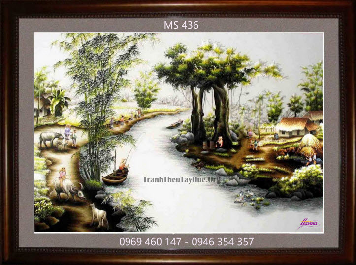 Tên tác phẩm: Tranh thêu phong cảnh làng quê MS 436