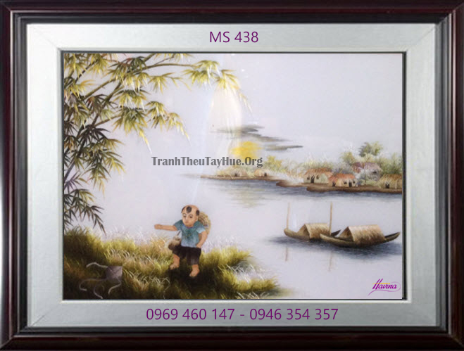 Tên tác phẩm: Tranh thêu phong cảnh làng quê MS 438