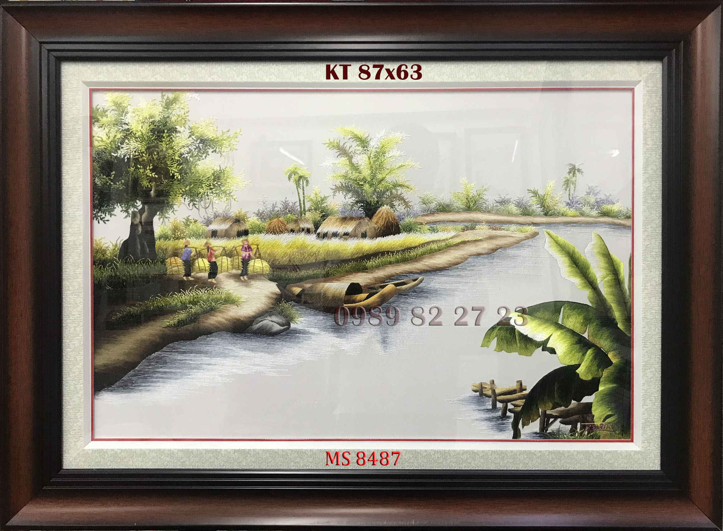 Tên tác phẩm: Tranh thêu phong cảnh làng quê MS 8487