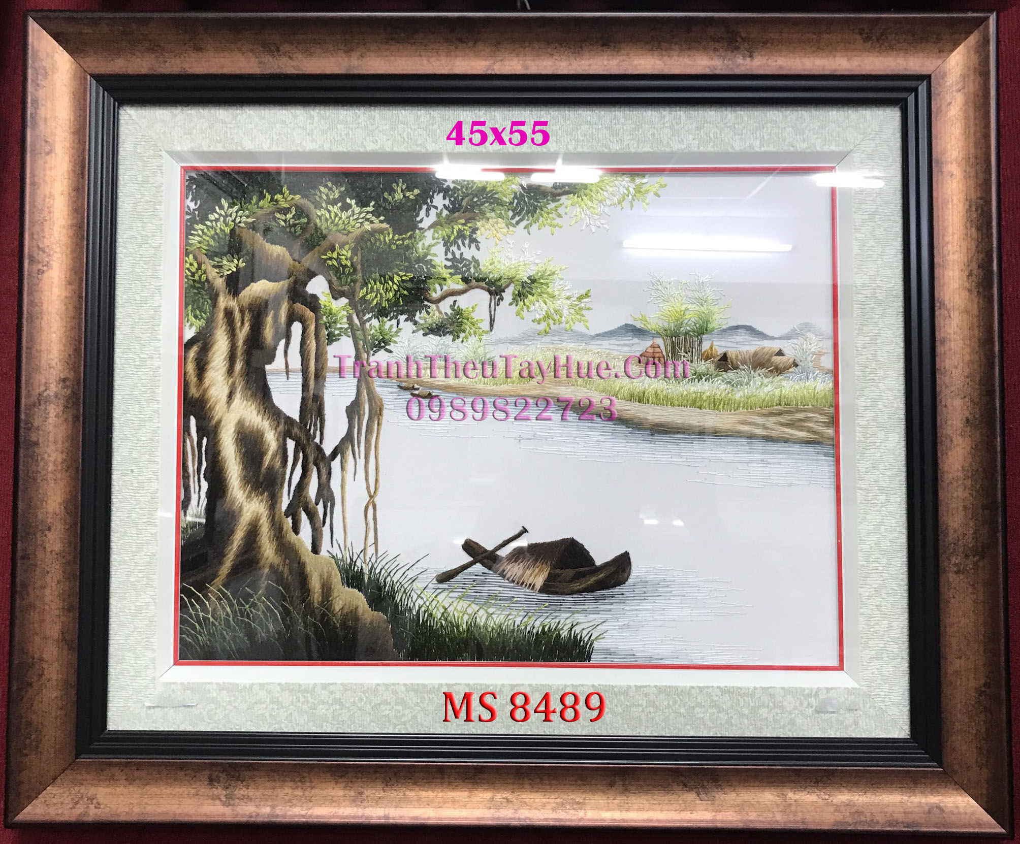 Tên tác phẩm: Tranh thêu phong cảnh làng quê MS 8489