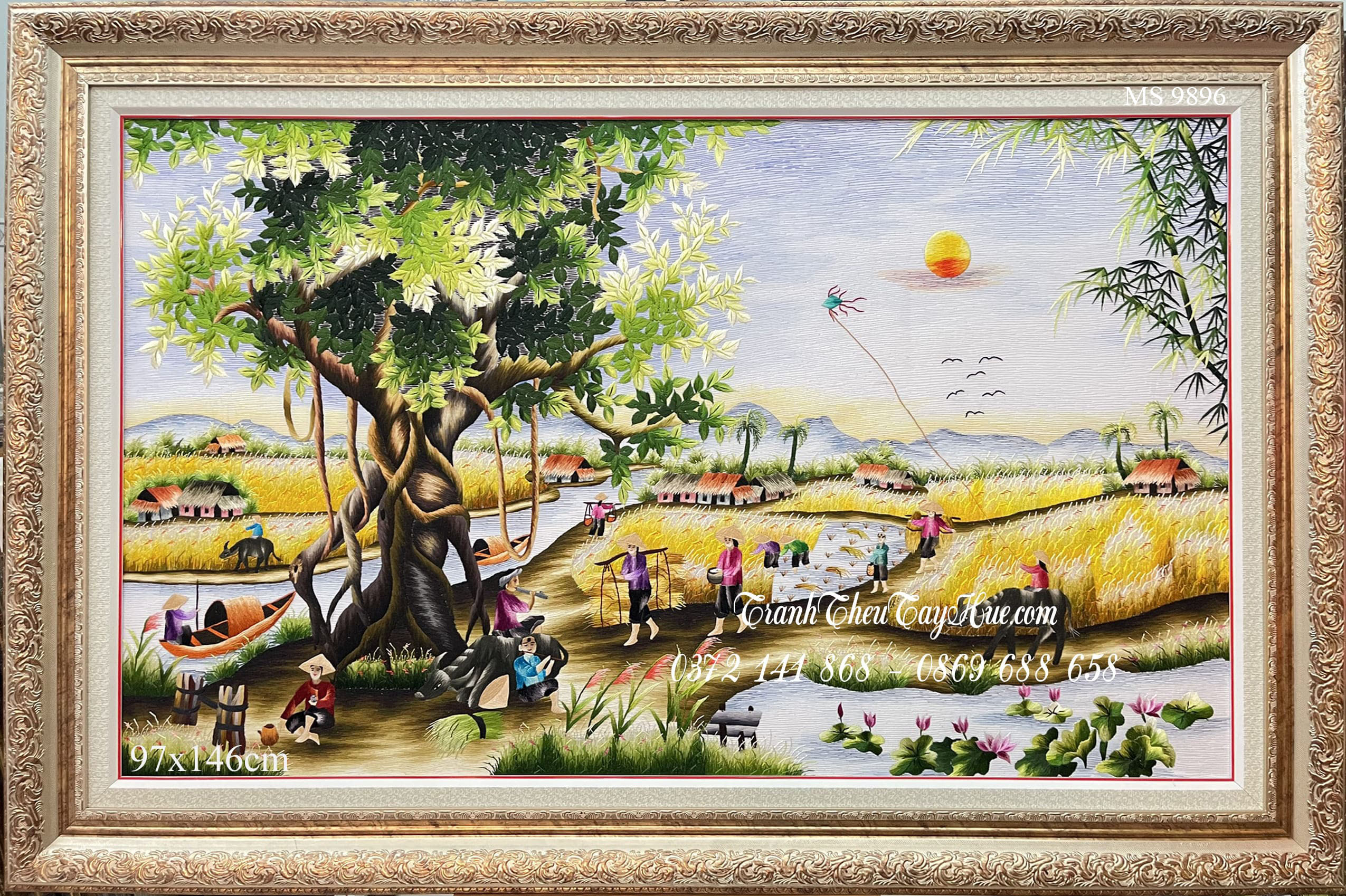 Tên tác phẩm: Tranh thêu phong cảnh làng quê MS 9896