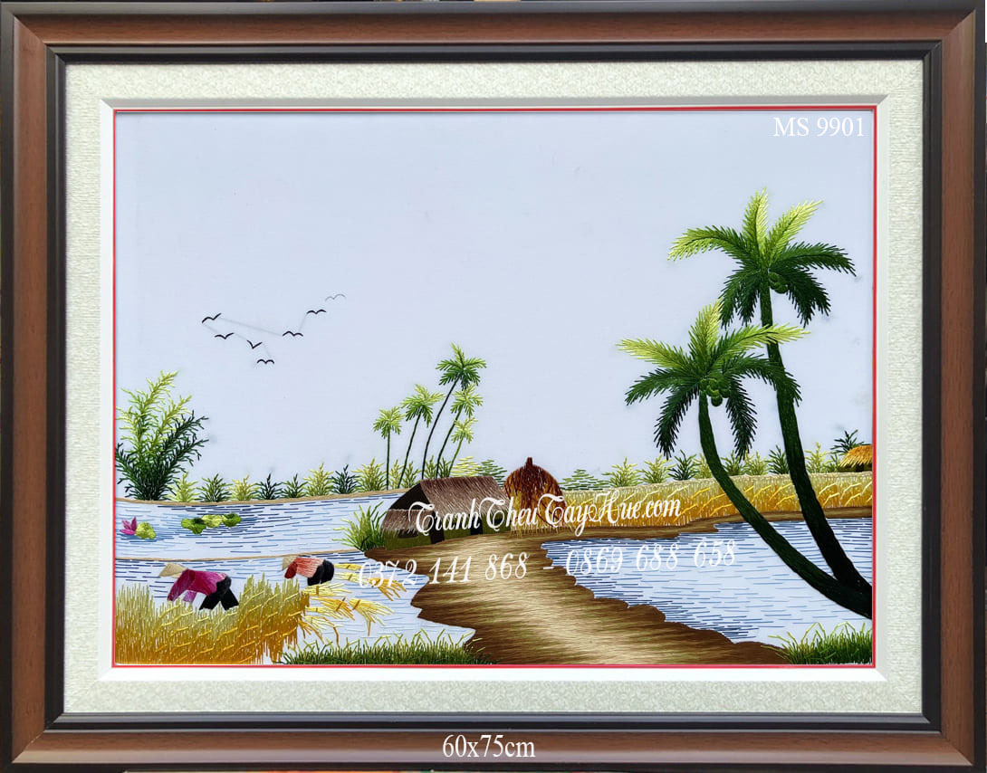 Những bức tranh thêu phong cảnh làng quê Việt Nam là loại tranh thêu đặc sắc và cao cấp. Chúng được thêu một cách tinh xảo, tỉ mỉ…Tranh thêu phong cảnh làng quê Việt Nam mang đậm tính thiên nhiên, làng quê, đất nước và con người Việt Nam. Tranh thêu phong cảnh làng quê Việt Nam mang đến cho ngôi nhà, văn phòng…của bạn một bức tranh thiên nhiên sống động đầy màu sắc, tạo cho gian phòng thêm tươi mới, tạo cho ta cảm giác như được hoàn quyện với thiên thiên.