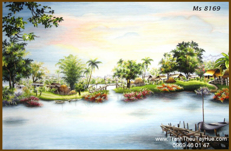 ♦ 100% tranh được thêu hoàn toàn bằng tay với kĩ thuật thêu tay truyền thống gốc Huế