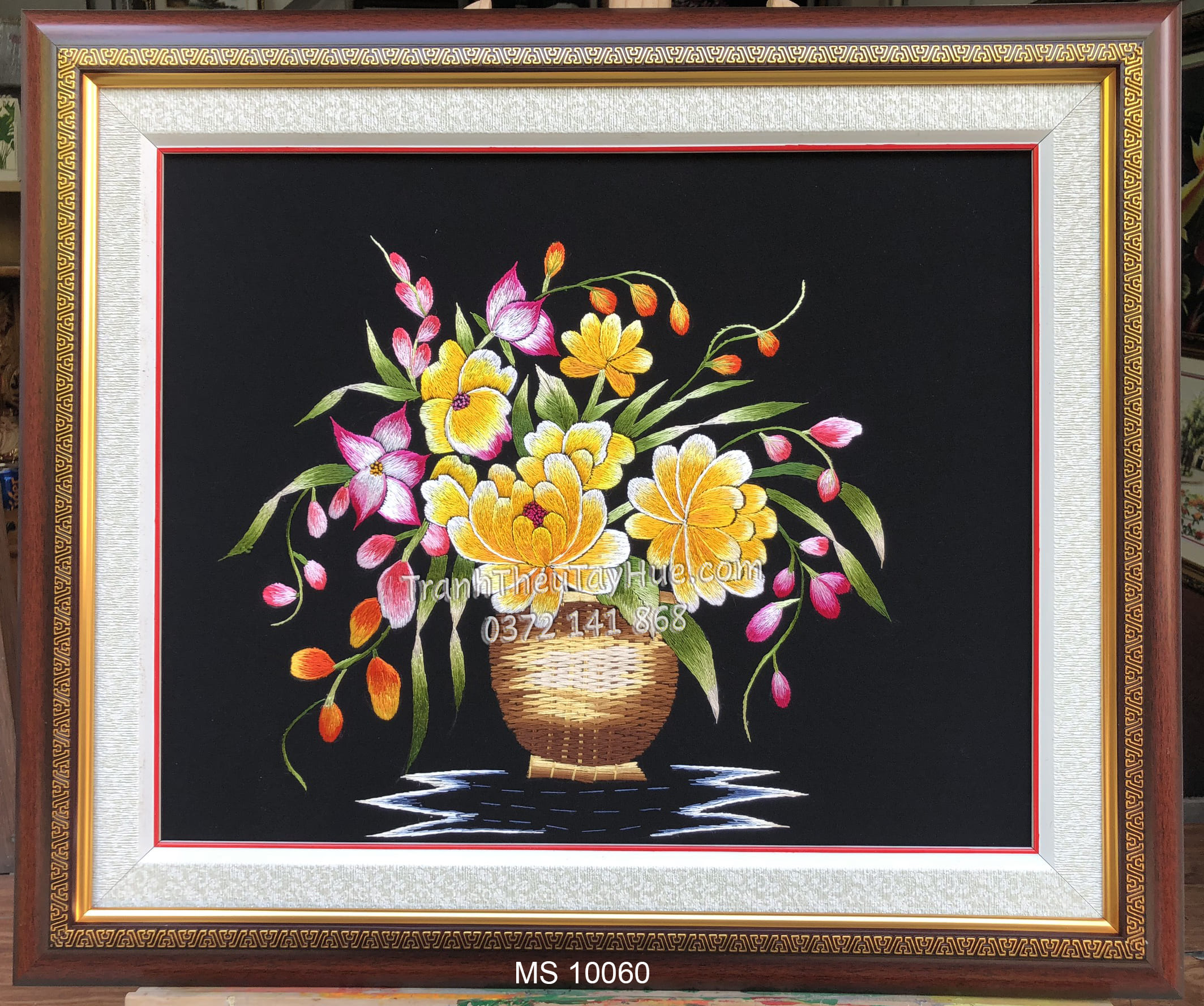 liên hệ đặt tranh thêu hoa cúc theo yêu cầu 0372141868