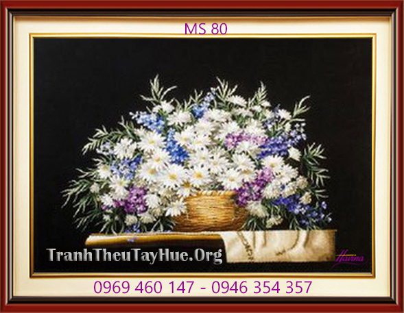 Tên tác phẩm: Tranh thêu hoa cúc MS 80