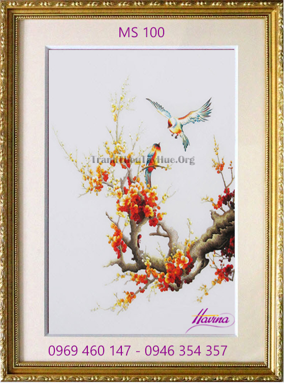 Tên tác phẩm: Tranh thêu hoa đào MS 100