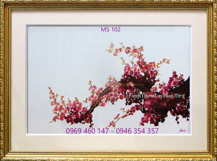 Tên tác phẩm: Tranh thêu hoa đào MS 102