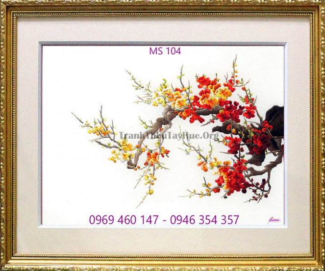 Tên tác phẩm: Tranh thêu hoa đào MS 104