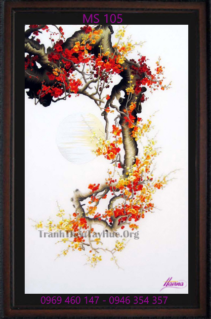 Tên tác phẩm: Tranh thêu hoa đào MS 105