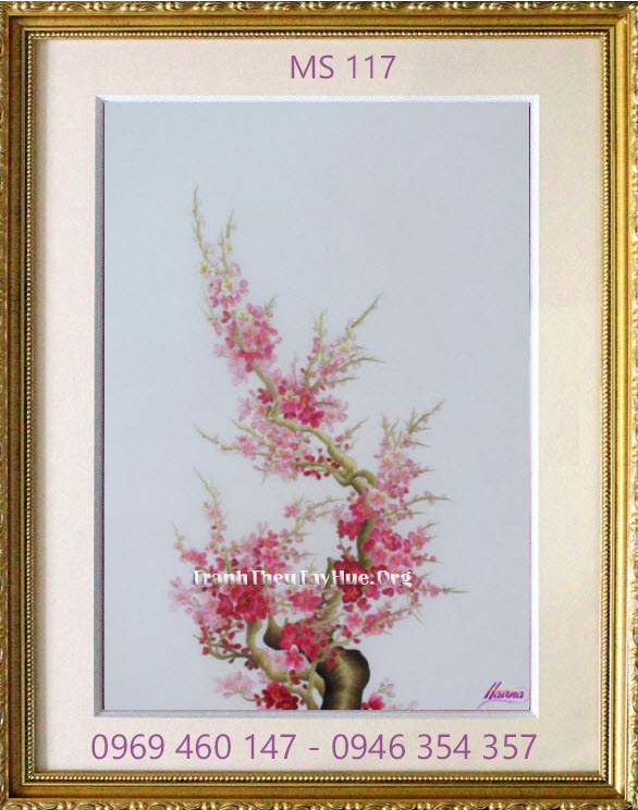 Tên tác phẩm: Tranh thêu hoa đào MS 117