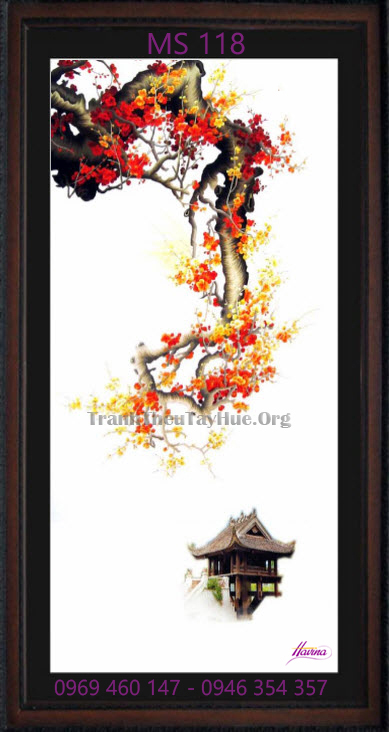 Tên tác phẩm: Tranh thêu hoa đào MS 118
