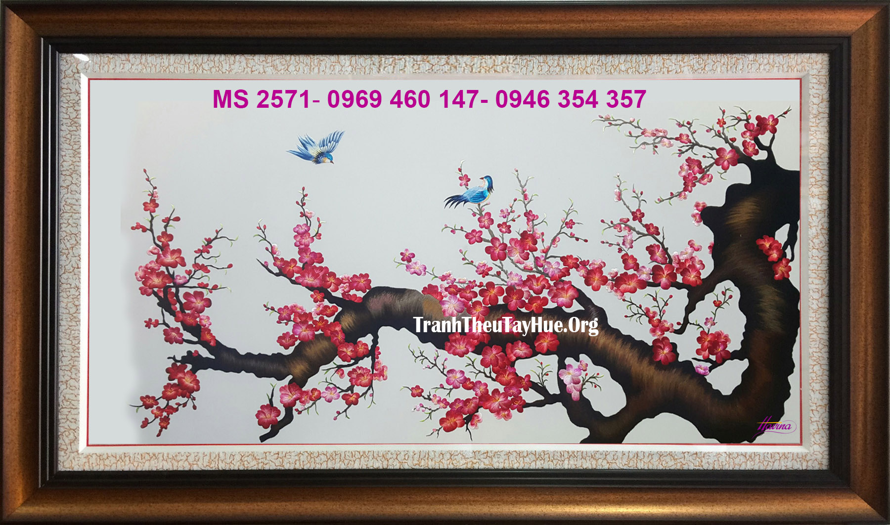 Tên tác phẩm: Tranh thêu hoa đào MS 2571