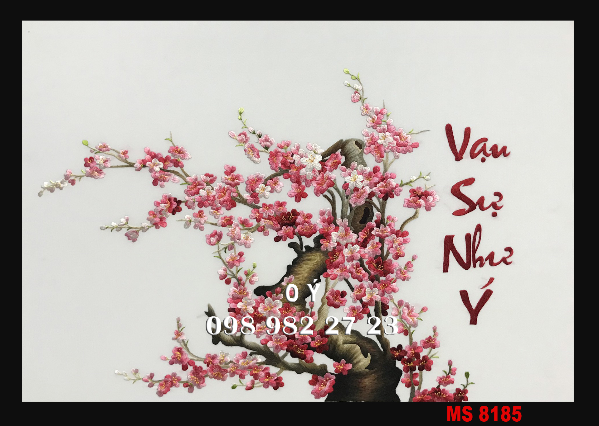Tên tác phẩm: Tranh thêu hoa đào MS 8185