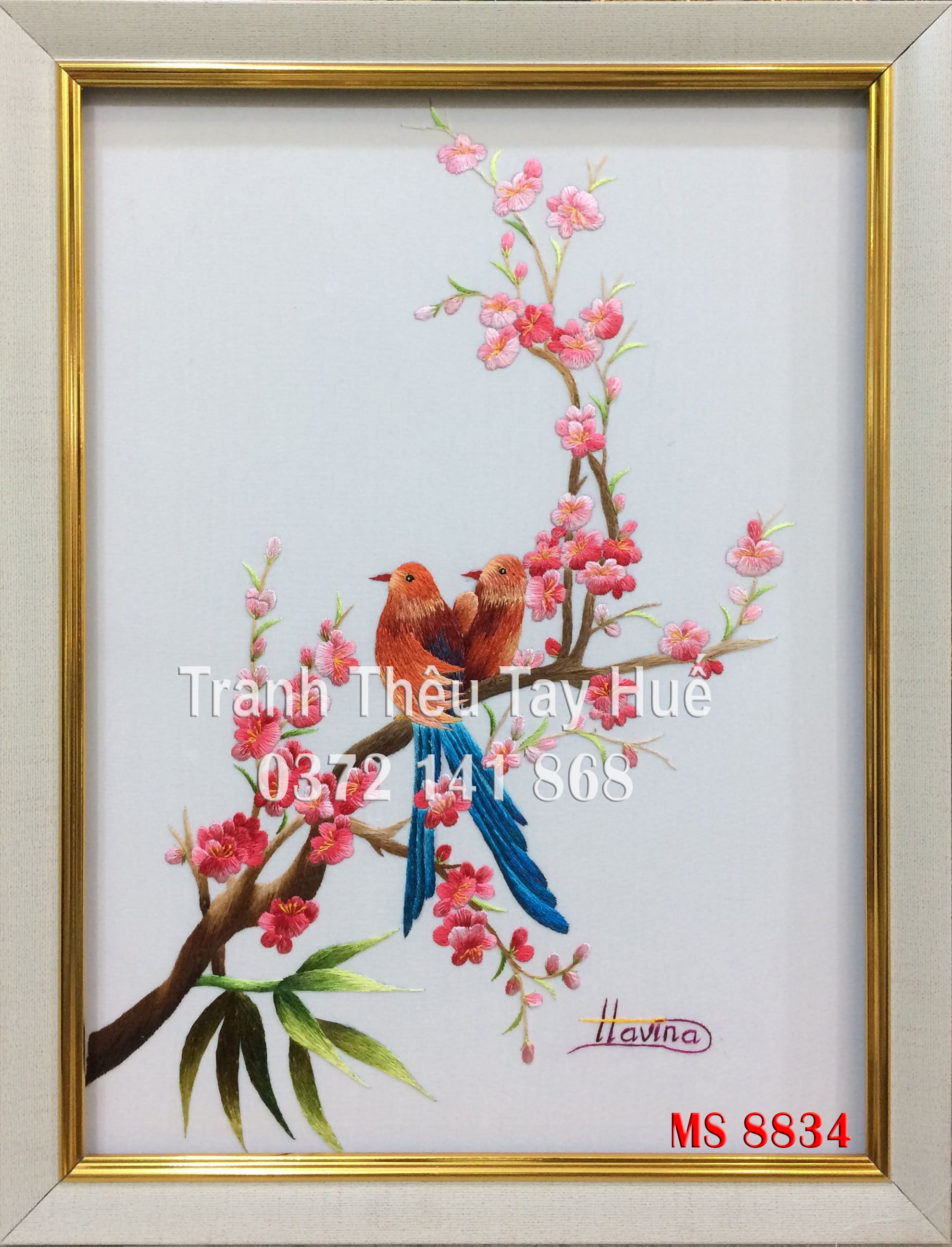 Tên tác phẩm: Tranh thêu hoa đào MS 8834