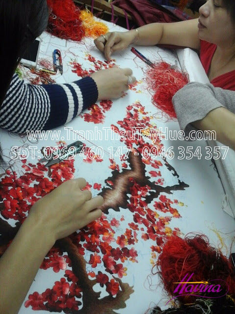 Nguyên liệu được sử dụng: Chỉ tơ kết hợp với chỉ DMC Pháp thêu trên vải lụa