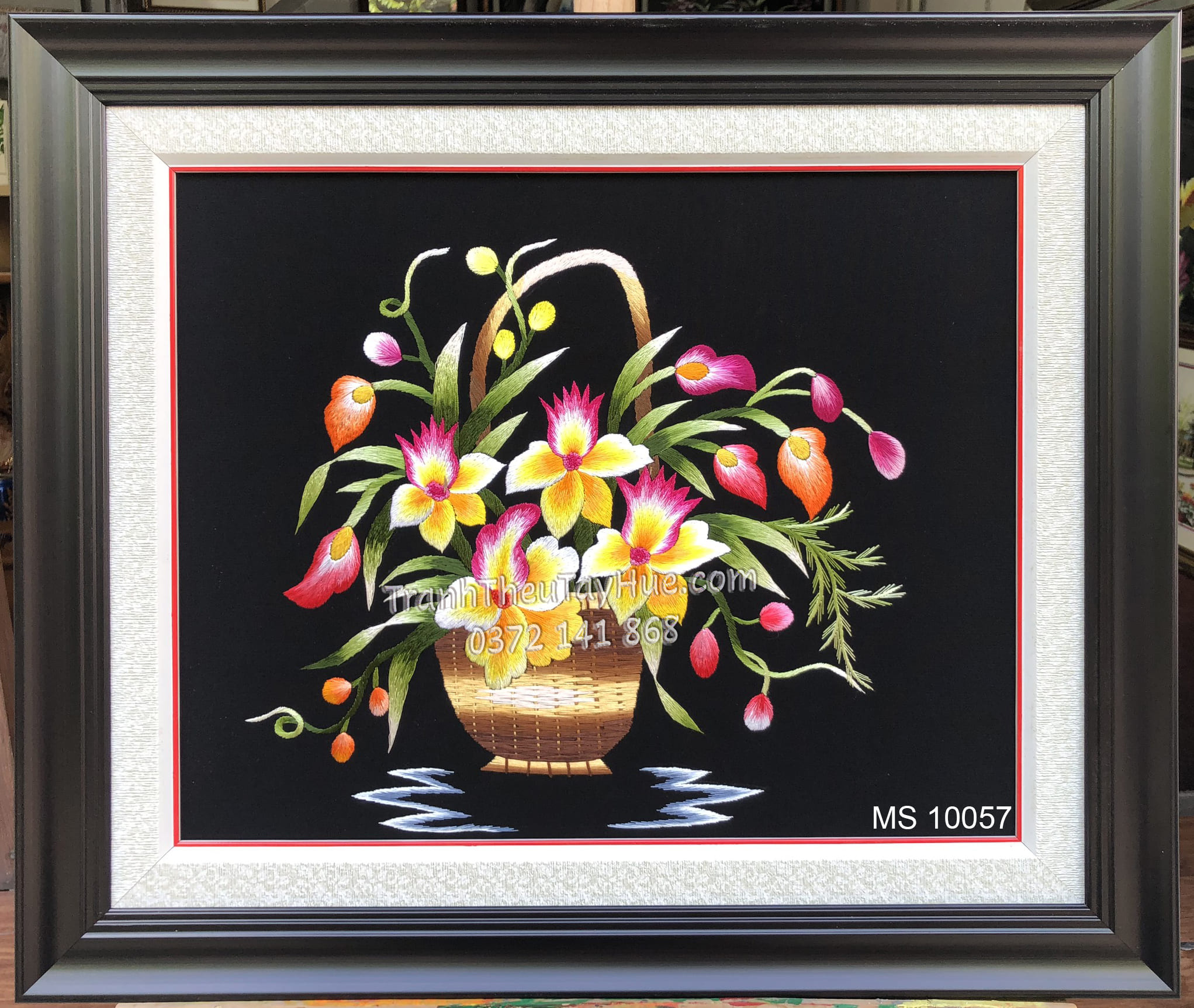 Tranh thêu hoa lan mà bạn đang xem là một trong những tác phẩm tranh thêu đặc sắc của nghệ thuật thêu tay truyền thống xứ Huế. Những bức tranh thêu này được thêu hoàn toàn bằng tay bởi những nghệ nhân tài hoa và dày dặn kinh nghệm của đất kinh thành Huế.