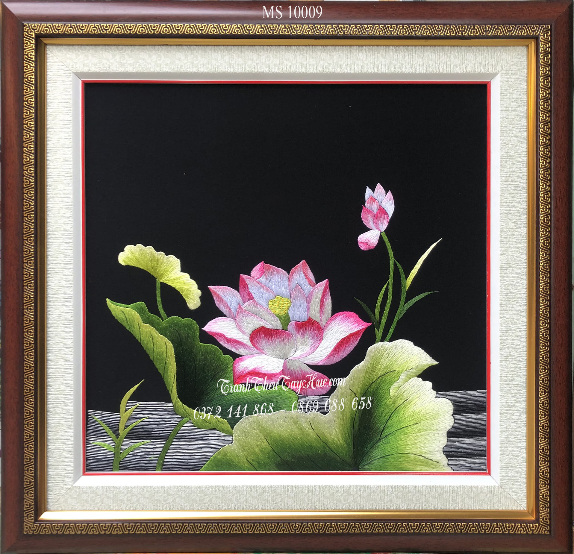 Tên tác phẩm: Tranh thêu hoa sen 10009