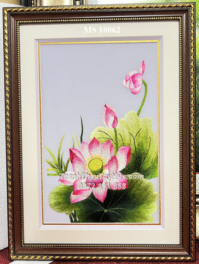 Liên hệ đặt tranh thêu hoa sen ms 10062
