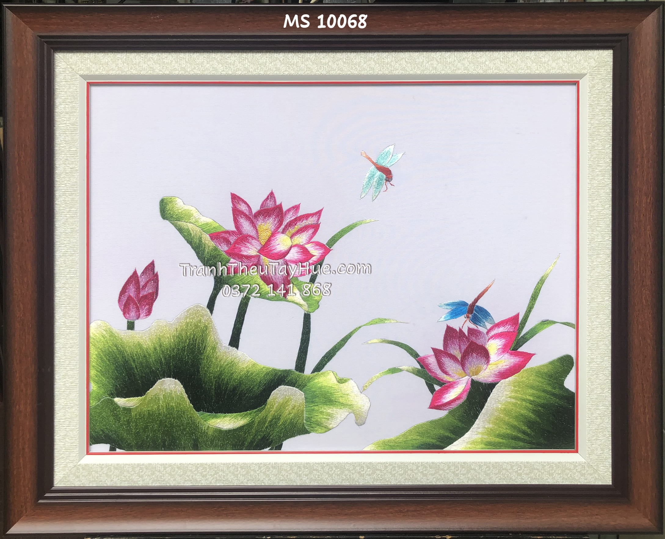 Liên hệ đặt tranh thêu hoa sen ms 10068