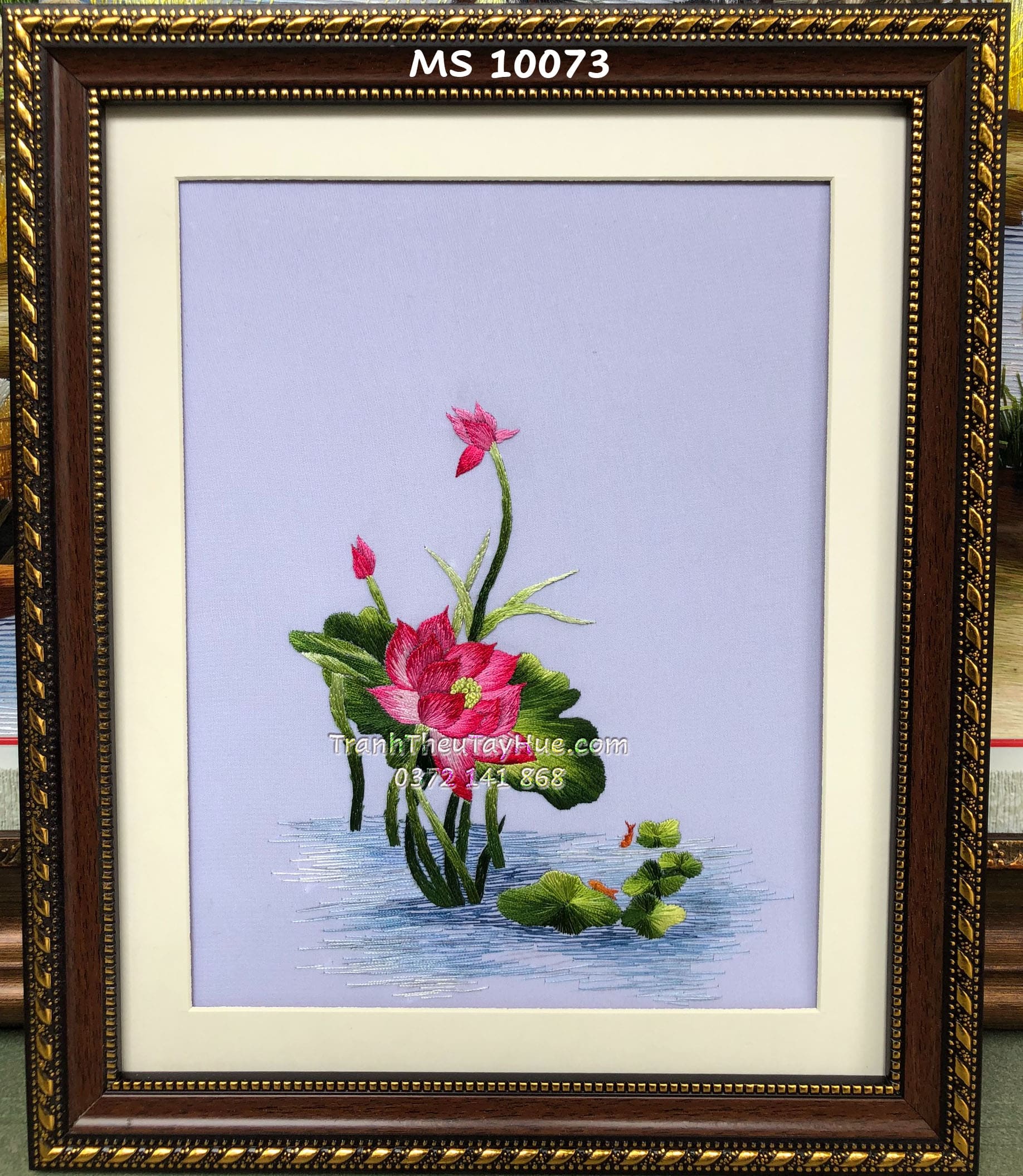 Liên hệ đặt tranh thêu hoa sen ms 10073