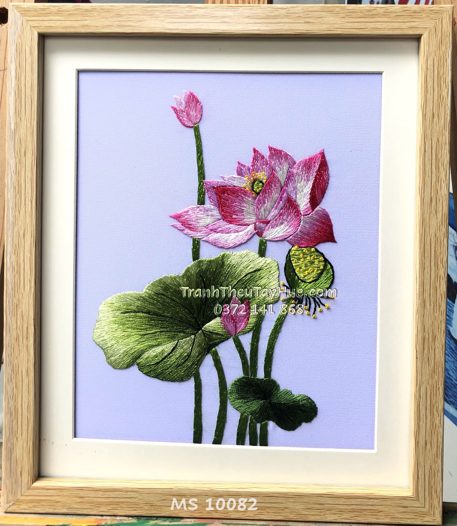 Tên tác phẩm: Tranh thêu hoa sen ms 10082