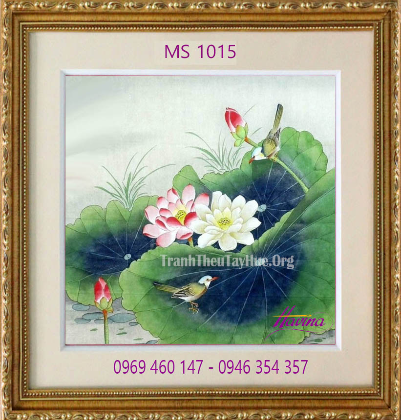 Tên tác phẩm: Tranh thêu hoa sen MS 1015