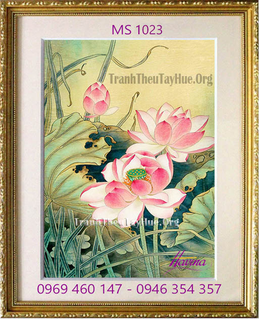 CHI TIẾT TÁC PHẨM TRANH THÊU HOA SEN MS 1023: