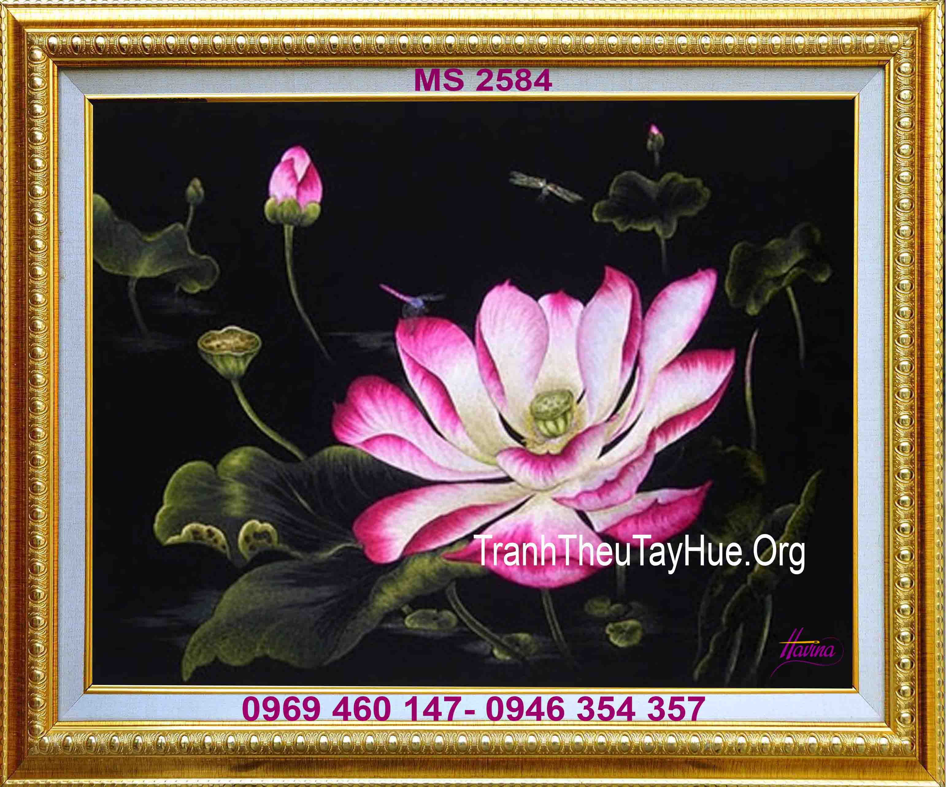 Tên tác phẩm: Tranh thêu hoa sen MS 2584