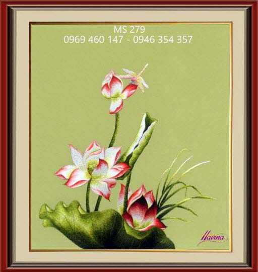 CHI TIẾT TÁC PHẨM TRANH THÊU HOA SEN MS 279: