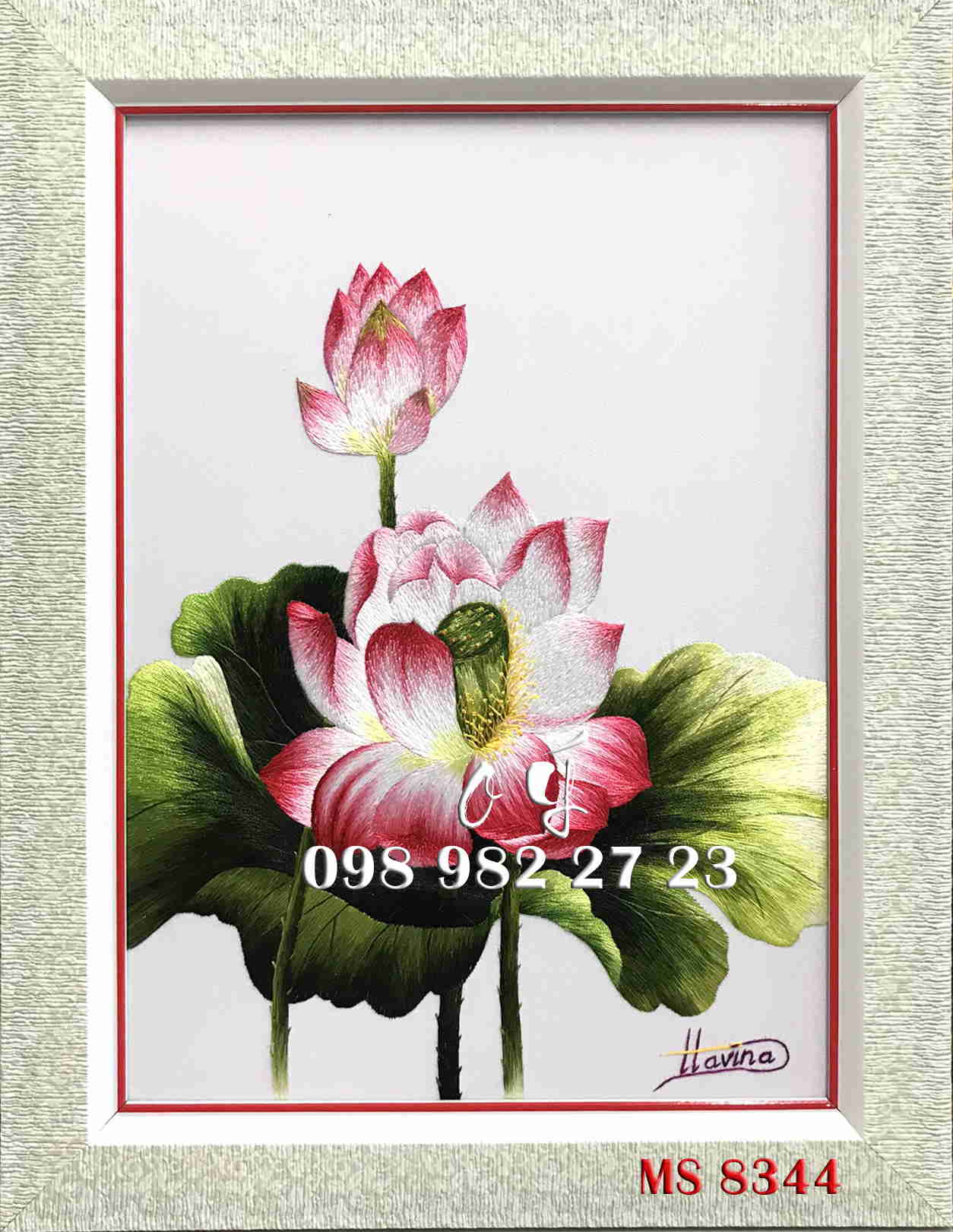 Tên tác phẩm: Tranh thêu hoa sen ms 8344