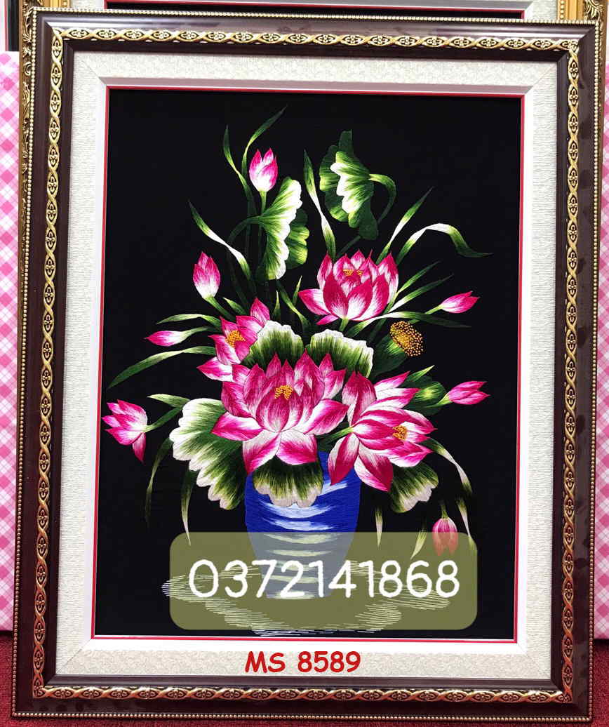 Tranh thêu hoa sen ms 8589